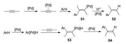 Pd berperan dalam adisi ikatan rangkap tiga pada alkuna. Dimana reaksi yang