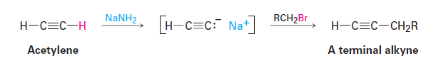Pembentukan terminal alkuna dapat dilakukan dengan alkilasi asetilena sedangkan pembentukan internal alkuna dapat dilakukan dengan alkilasi pada terminal alkuna. Dan syarat dari alkilasi adalah alkil halida yang digunakan haruslah alkil halida (bromida atau iodida) primer tidak diperkenankan untuk alkil halida sekunder atau primer karena tidak akan membentuk alkilasi tetapi akan terjadi dehidrohalogenasi.