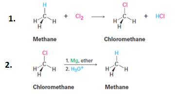 alkil klorida menjadi alkana melalui pereaksi Grignard diikuti oleh protonasi